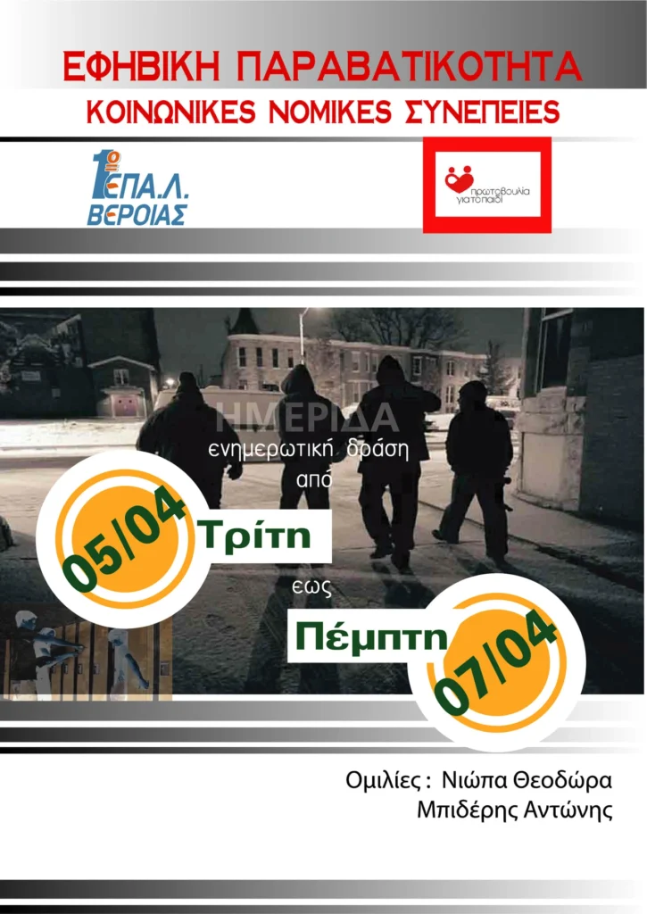 Ενημερωτική Δράση: «Παραβατικότητα Ανηλίκων – Νομικές και Κοινωνικές Προεκτάσεις» στο ΕΠΑΛ Βέροιας