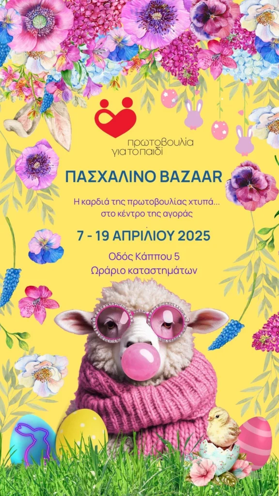 Η Πρωτοβουλία για το Παιδί σας προσκαλεί στο Πασχαλινό Bazaar της, το οποίο θα πραγματοποιηθεί από τη Δευτέρα 7 έως το Μ. Σάββατο 19 Απριλίου 2025, στην Οδό Κάππου 5 (απέναντι από το εστιατόριο-Cafe Camares). Οι εθελόντριες του Συλλόγου μας, για ακόμα μια χρονιά, έχουν ετοιμάσει μια ποικιλία από μοναδικές, χειροποίητες λαμπάδες και πασχαλινά διακοσμητικά, όλα φτιαγμένα με […]