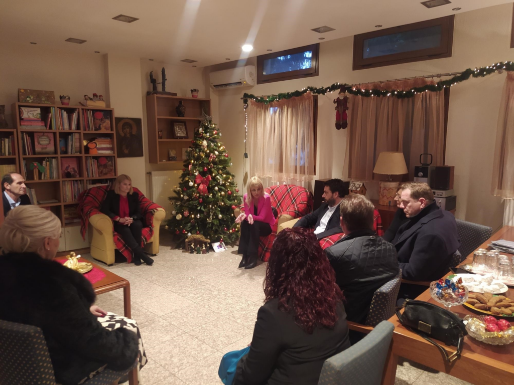 Το Σάββατο 10 Δεκεμβρίου 2022 επισκέφθηκε το Σπίτι της Βεργίνας η Βουλευτής Θεσσαλονίκης κυρία Έλενα ΡάπτηΣυντονίστρια του Προγράμματος του Συμβουλίου της Ευρώπης «Ένα στα Πέντε», και η κυρία Μαρία ΝάτσιουΓραμματέας Κοινωνικής Αλληλεγγύης και Ανθρωπίνων Δικαιωμάτων της Νέας Δημοκρατίας, συνοδευόμενες από τον Υφυπουργό Οικονομικών Απόστολο Βεσυρόπουλο, τους Βουλευτές Ημαθίας Τάσο Μπαρτζώκα και Λάζαρο Τσαβδαρίδη και από τοπικά στελέχη της Νέας Δημοκρατίας.