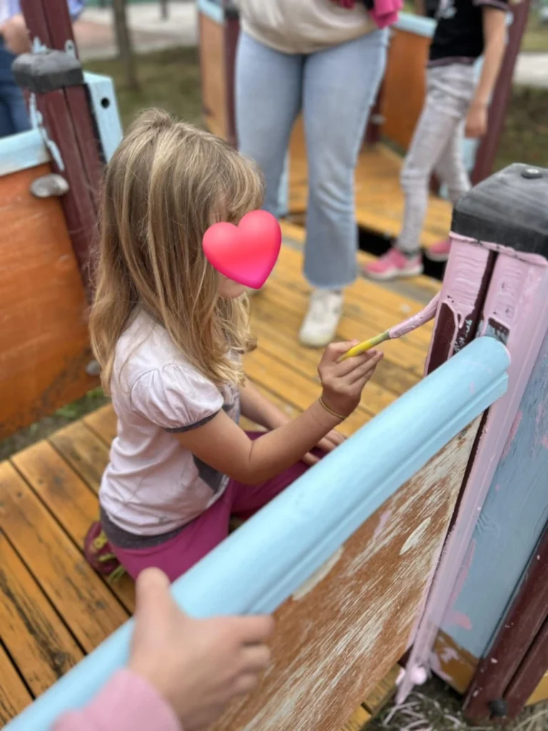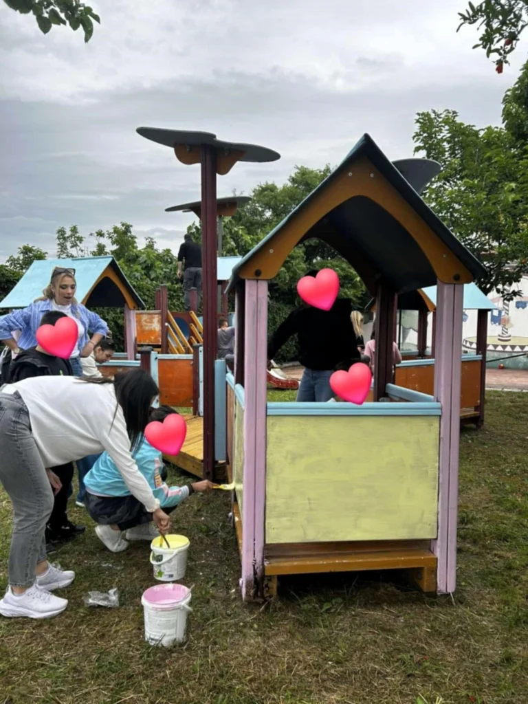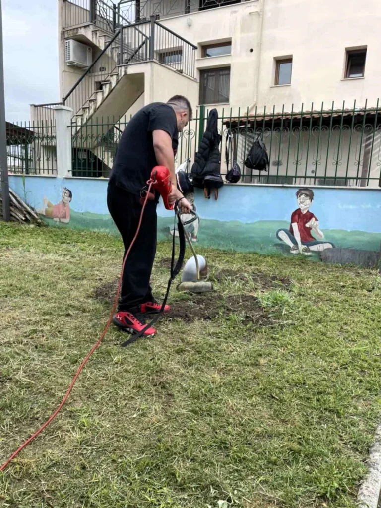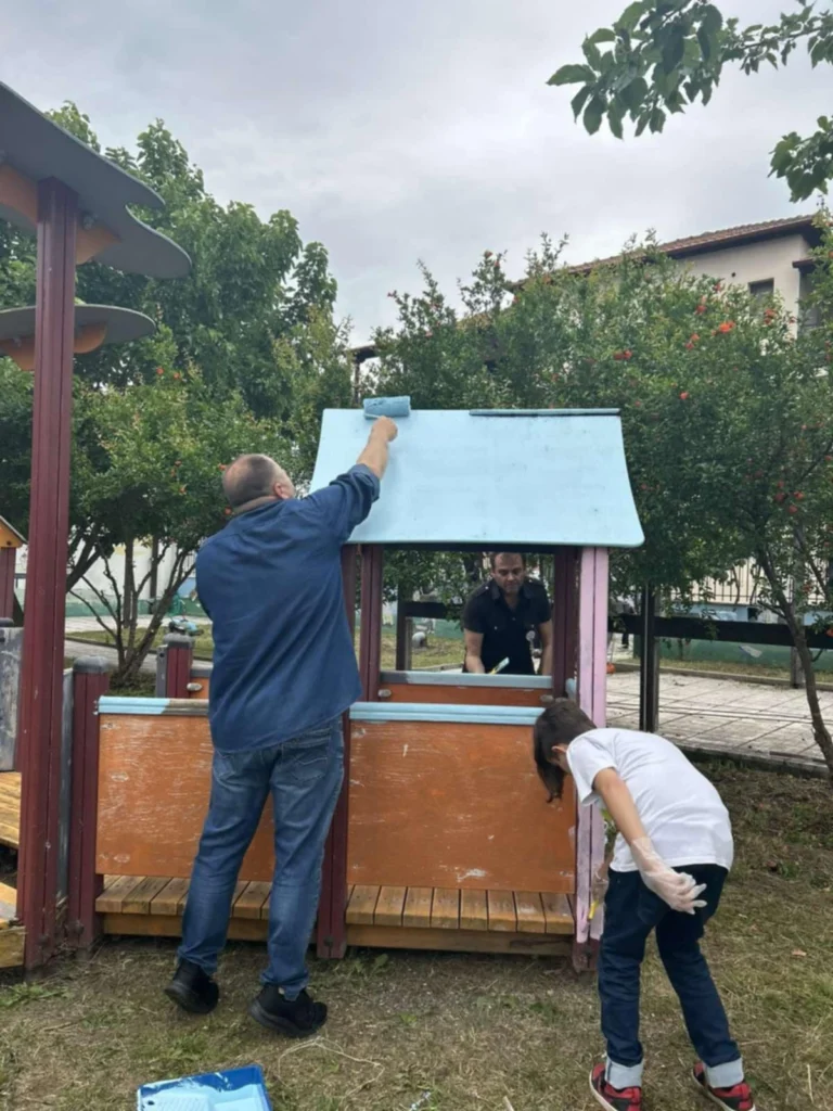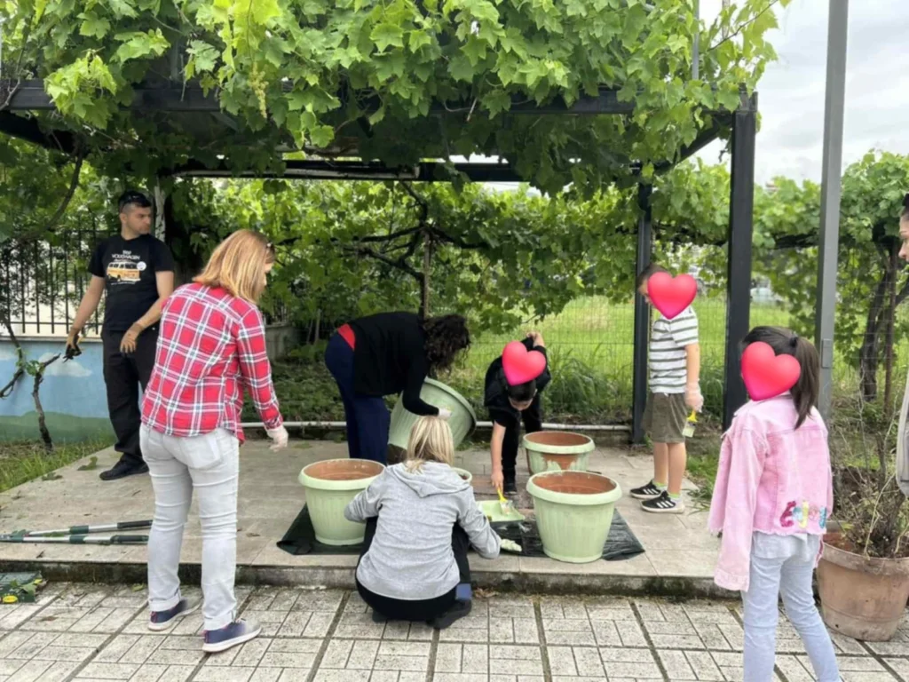 Με φτυάρια και κλαδευτήρια στα χέρια, φύτεψαν λουλούδια, κούρεψαν το γρασίδι, κλάδεψαν τους φράχτες, συντήρησαν και φρέσκαραν με χαρούμενα χρώματα την παιδική χαρά της αυλής,  κάνοντάς τον χώρο όμορφο, ασφαλή και… έτοιμο για ατελείωτες ώρες παιχνιδιού!